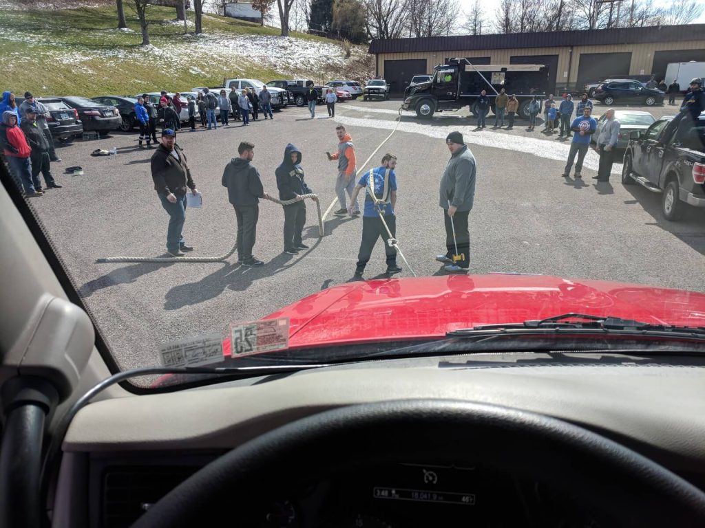 Aaron Demchak, Transportation Driver for Ritchey Metals, volunteered his time and took his tractor down to let the competitors take turn pulling it for distance.
